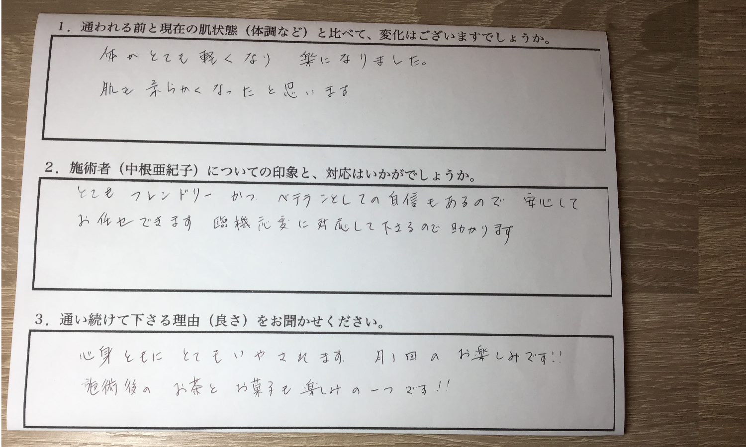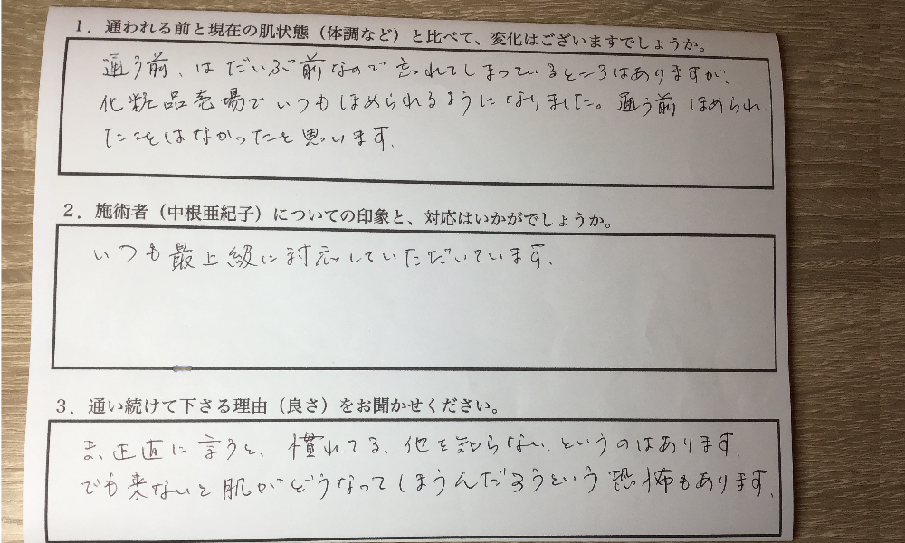 フェイシャルコース…『多少遠くても、中根さんじゃなきゃダメだと思っています』